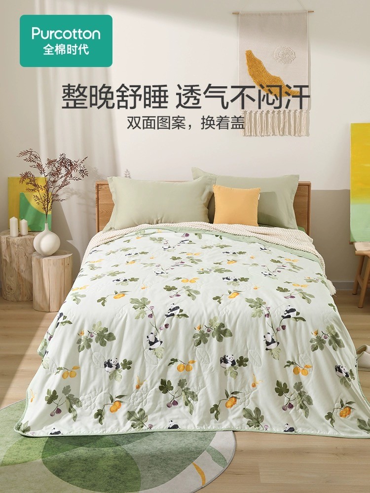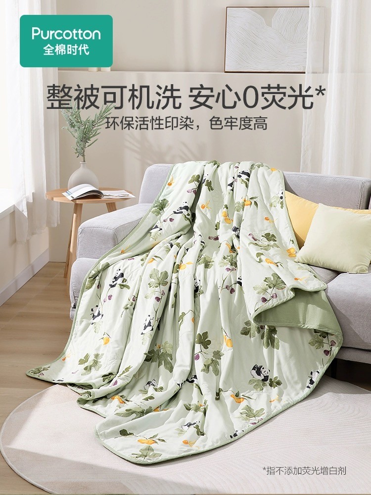 全棉时代秋梭织拼纱布夹棉被 200cm×230cm 熊猫乐园,1件装